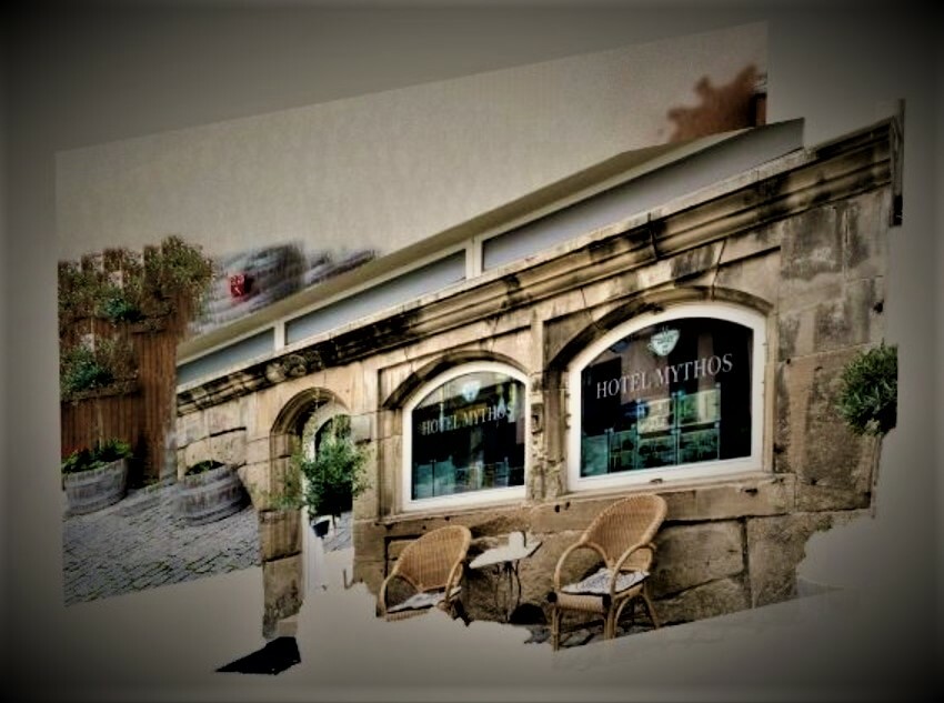 Beim Hotel Mythos handelt es sich um zwei Häuser – eines davon stammt aus dem Jahr 2003, das zweite wurde 2015 angebaut. Vor dem Hotel befindet sich ein kostenlos benutzbarer öffentlicher Parkplatz.