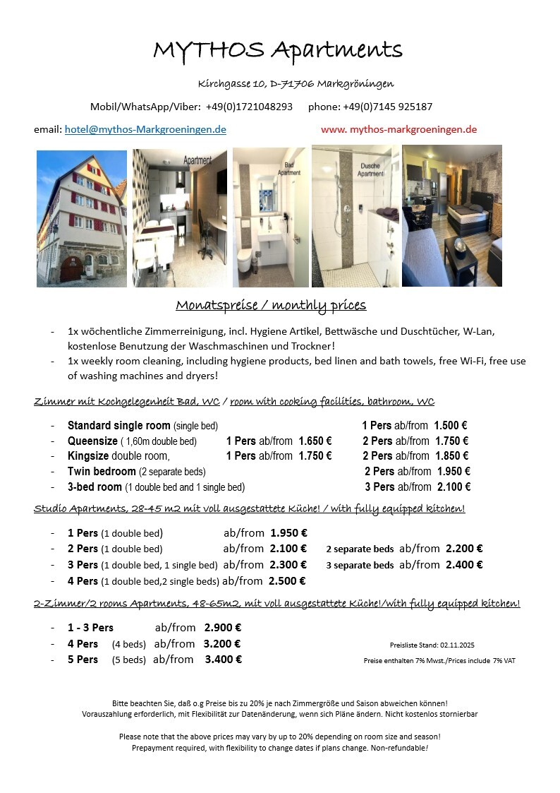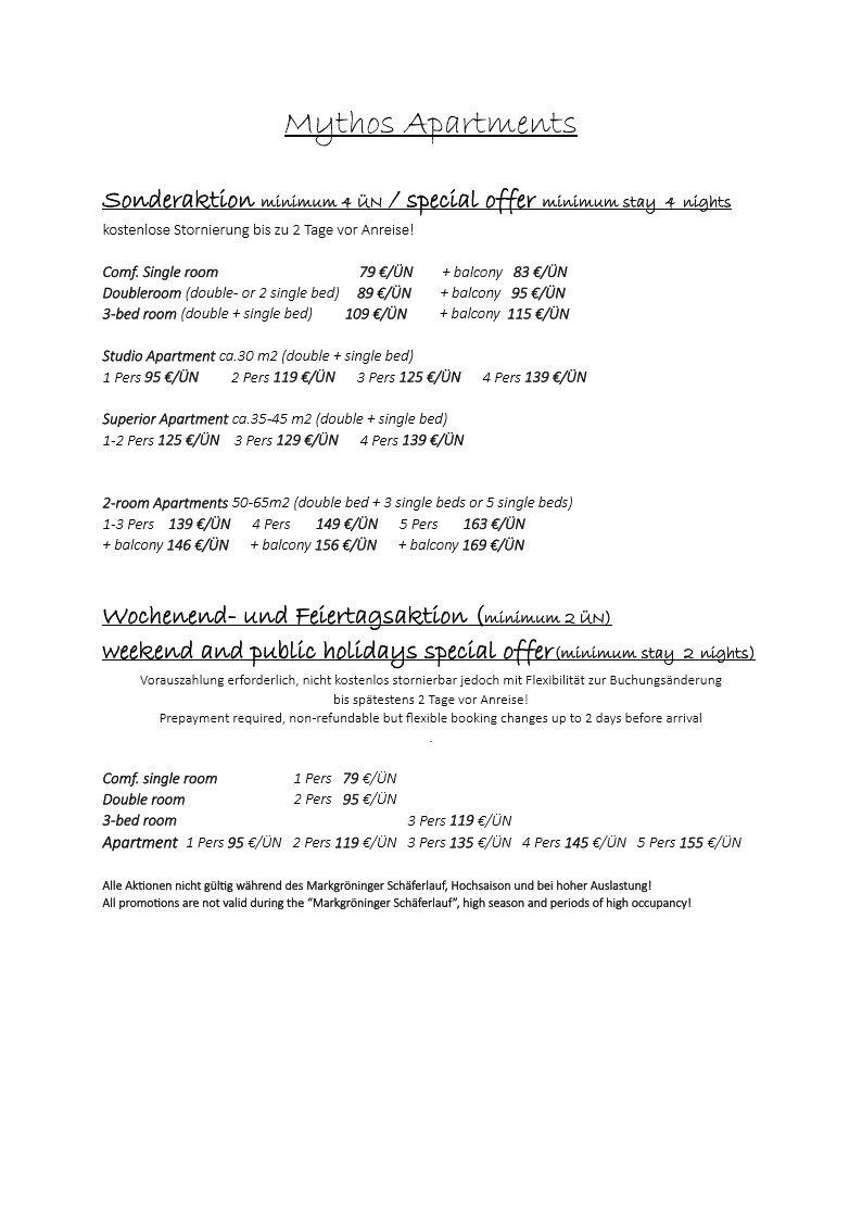 Alle Sonderangebote gelten nicht während des Markgröninger Schäferlaufs und in Zeiten hoher Nachfrage Hauptsaison!
